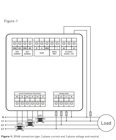 Usually this network analyzer is used with current measuring transformers – 60/5 75/5 100/5 150/5 200/5 250/5 300/5 400/5 500/5 600/5 800/5 1000/5 1500/5 or similar. You can buy such transformers in our e-shop, If you are going to connect the analyzer to ModBus, we will send you on request a Register Table with ModBus addresses