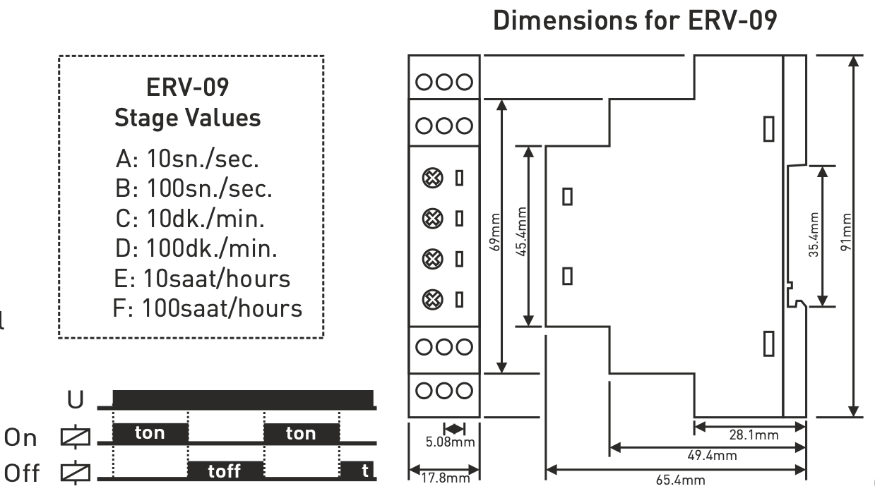 - time relay – cycler with independently adjustable switching on and off time of the output