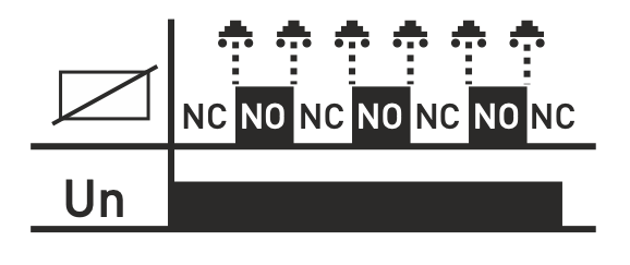 For electrical pulse/button switching usable in conjunction with any number of buttons. Dimensions 1 modular unit