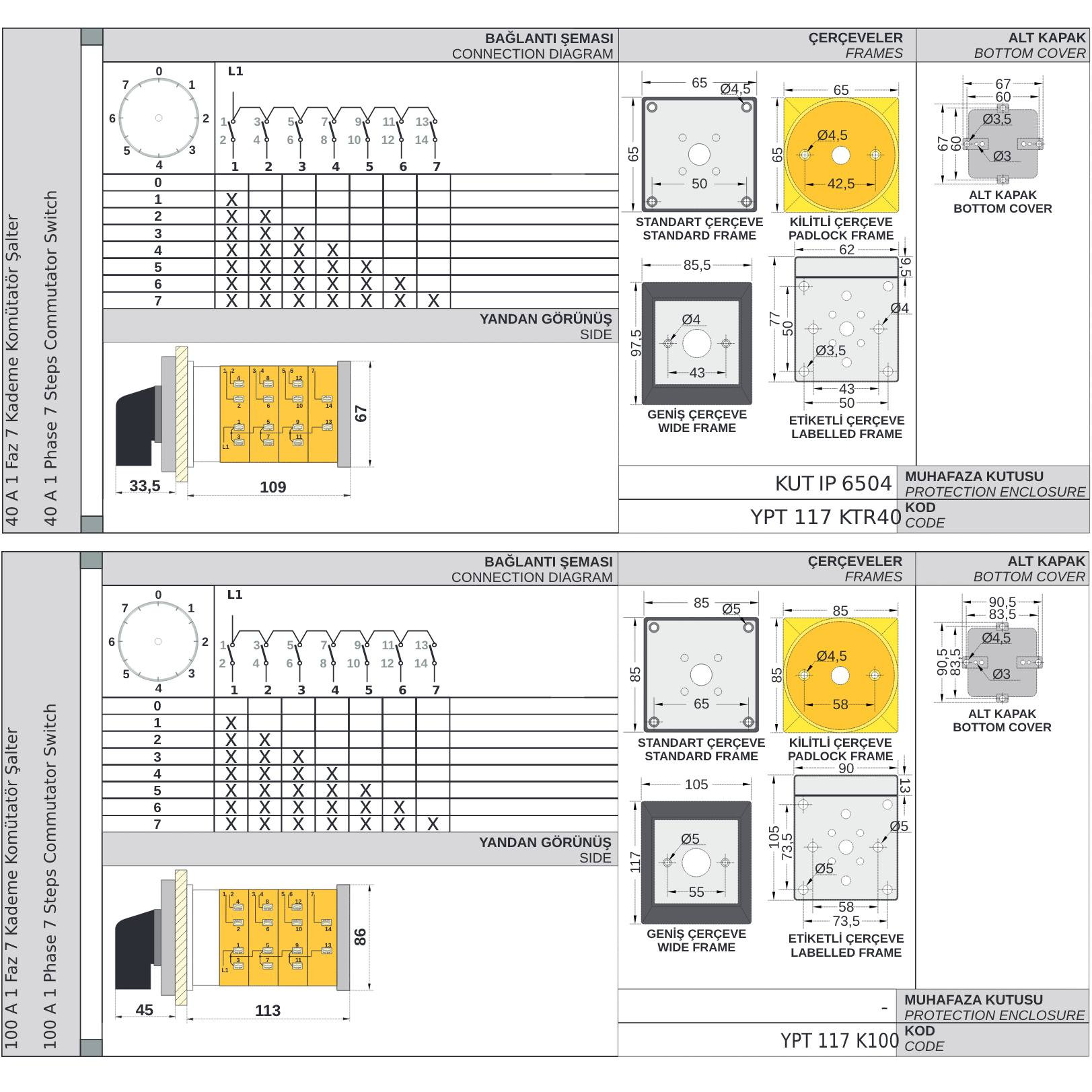 Step/step commutator switch of rotary cam packet group 0-1-2-3-4-5-6-7, YPT117K, manufacturer OPAÅž (Turkey)
