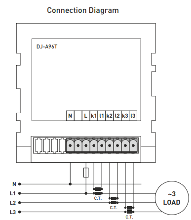 DJ-A96T – Digital ammeter three-phase built-in version AC, X/5, indirect measurement Digital current indicator, three-phase, panel meters TENSE