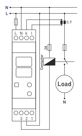 Schließen Sie das Gerät gemäß dem beiliegenden Schaltplan an. Ein falscher Anschluss kann zur Beschädigung des Gerätes führen. Stellen Sie den Überstromwert entsprechend den Betriebsstromwerten der von Ihnen verwendeten Geräte ein.