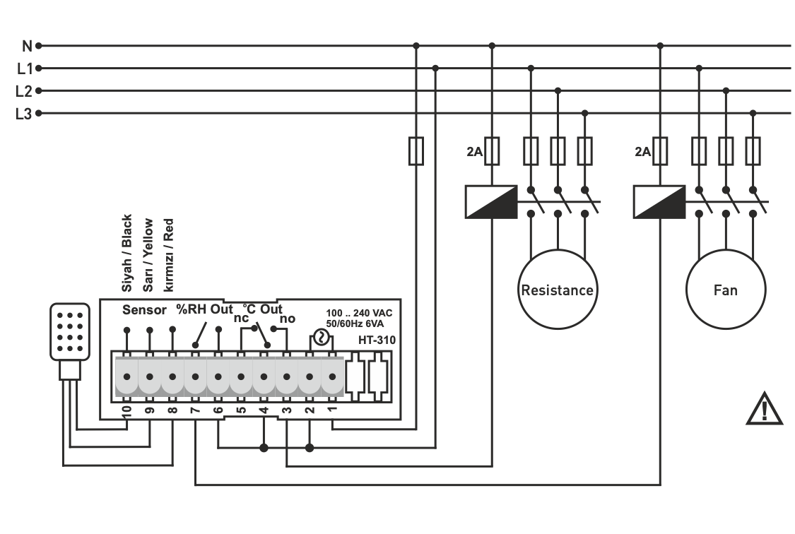 %RH-Ausgang - Relais (NO), 250VAC, 2A, ohmsche Last