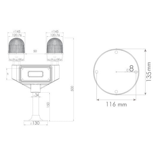 Double light for surface mounted obstacles, 85-250 V AC/DC, manufacturer MUCCO (Turkey)