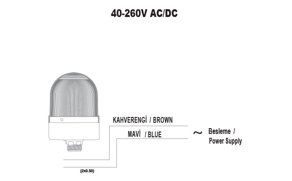 Blinkend ø70 NUT.CONN.SIGNAL BEACON MIT SUMMEN, 40-250V AC/DC, BLAU MIT 20CM EXT.TUBE