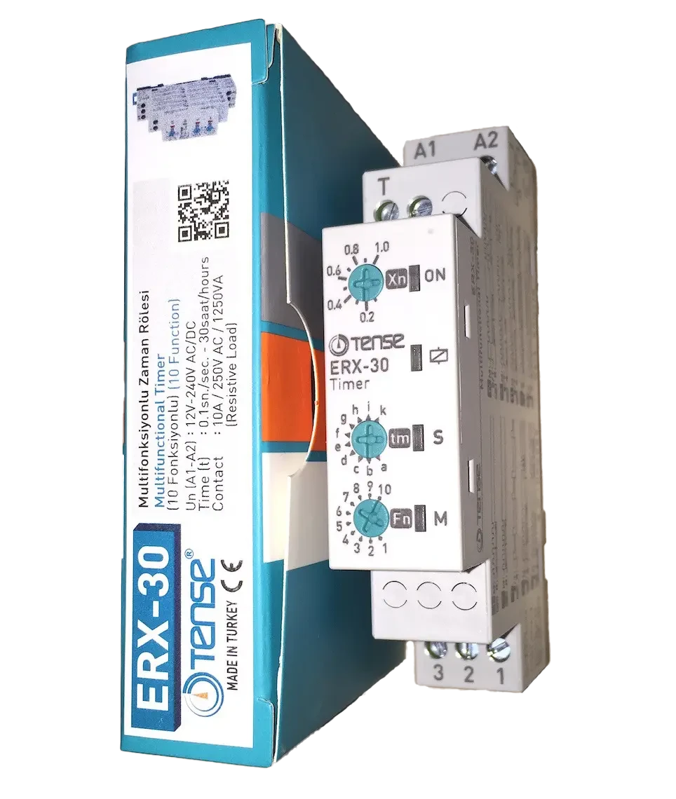 Das Multifunktions-Zeitrelais ERX-30 ist ein universelles Steuerelement für Verzögerung, Schalten, Impulssteuerung und periodische Abläufe in der Automatisierung. Es bietet bis zu10 Zeitfunktionenund deckt damit die meisten Aufgaben in Industrie und Haushalt ab.