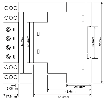 Die Montage erfolgt auf einer Standard35mm DIN-Schiene.