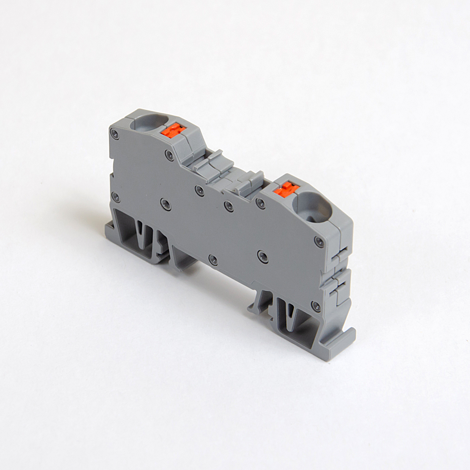 Federsammelschienenverbinder / DIN-Schienenklemme 2-polig, einziehbarer Kontakt, grau, ONKA, made in Turkey