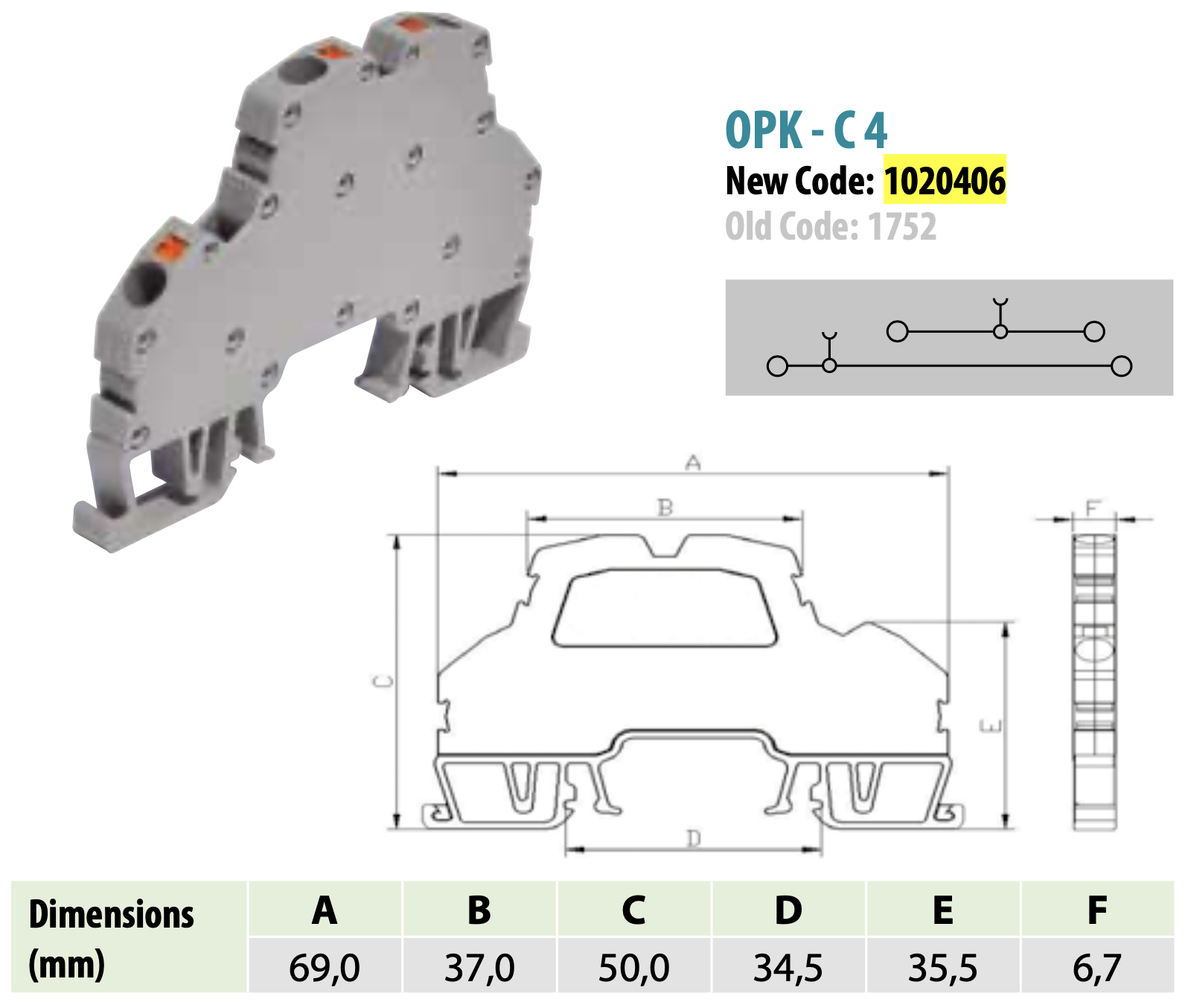 2-Pair Spring Busbar Rail Connector / DIN Rail Terminal 4-wire grey, ONKA, made in Turkey