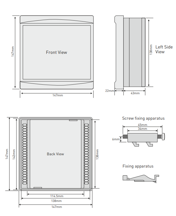 The digital processing of the values measured by the regulator ensures high accuracy in the evaluation of the effective voltage, current and power factor.