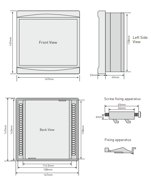 The digital processing of the values measured by the regulator ensures high accuracy in the evaluation of the effective voltage, current and power factor.