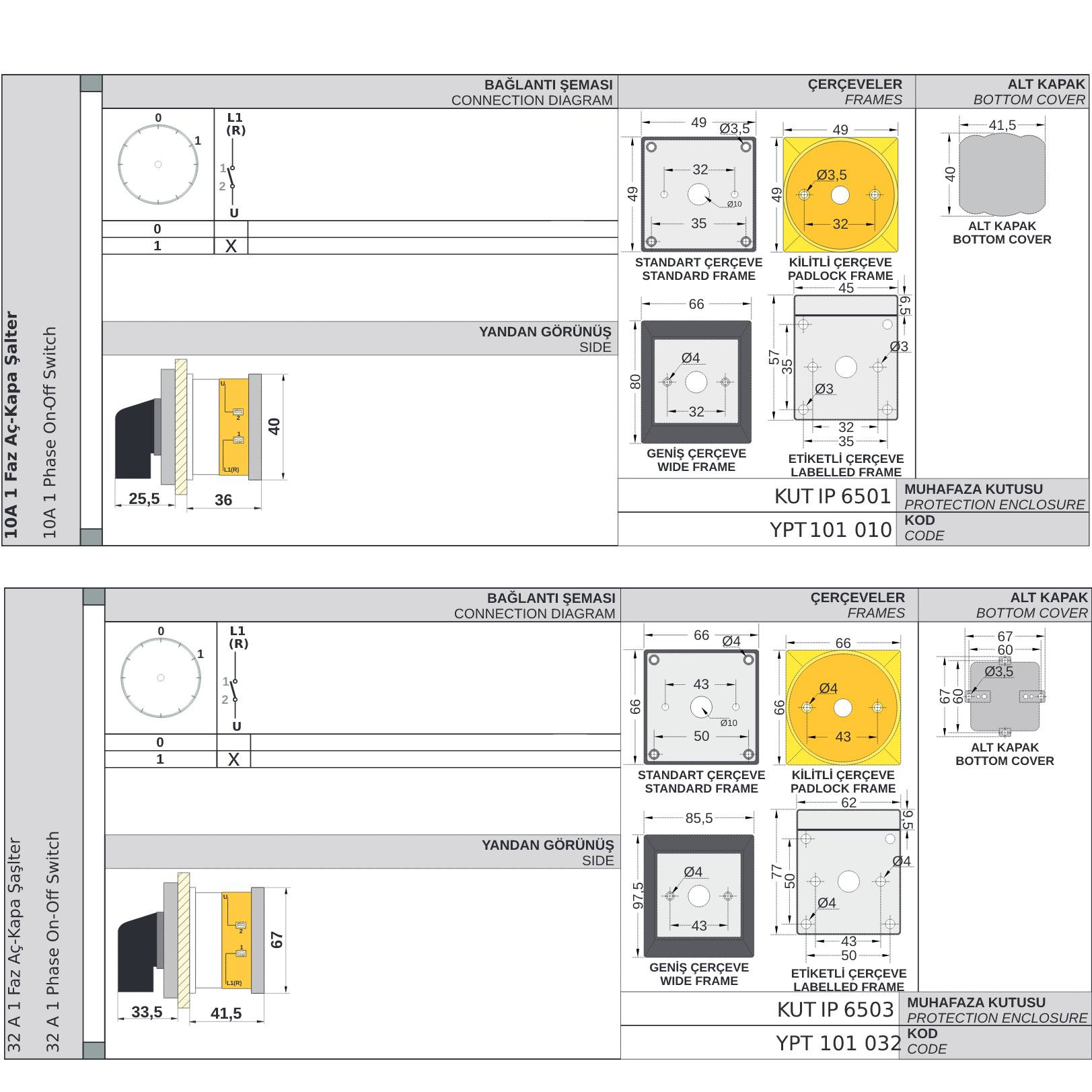 10 A, 16 A, 25 A, 32 A, 40 A, 63 A,