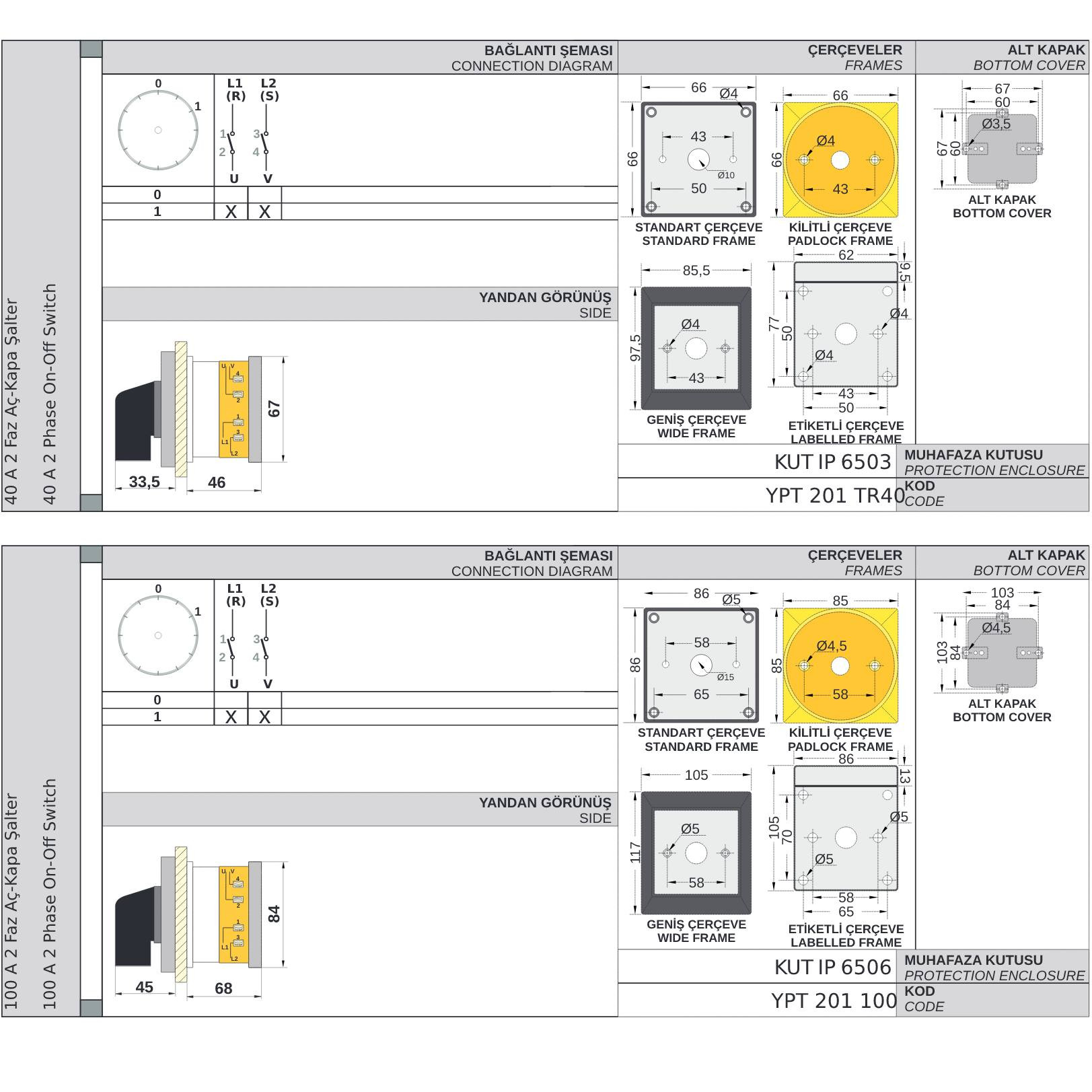 100 A, 125 A, 160 A, 200 A, 250 A, 315 A