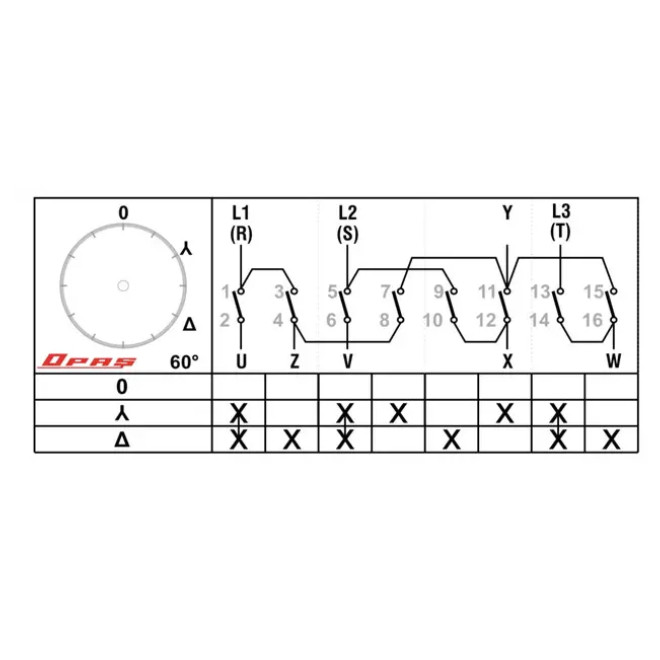 Star/Triangle 0-Y-D rotary switch, 3-pole, 16-100A, YPT302, manufacturer OPAÅž (Turkey)