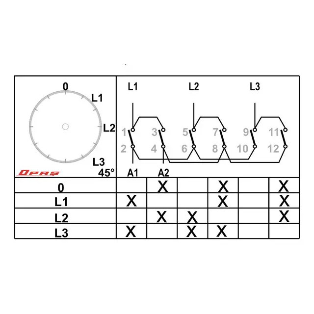 Voltmeter-Schalter 0-L1N-L2N-L3N - Nockenpaket-Drehschalter VOLTMETER, YET3V2M, OPAŞ (Türkei)
